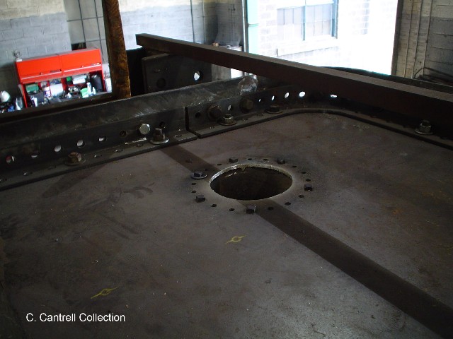 70. The tender deck floor drain is cut into the deck plate as well as the drain pipe mounting holes. |