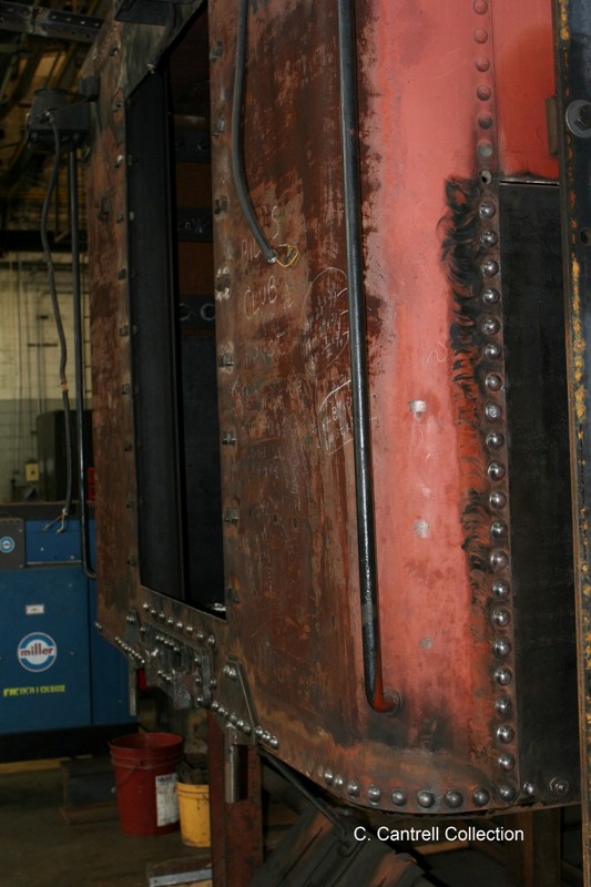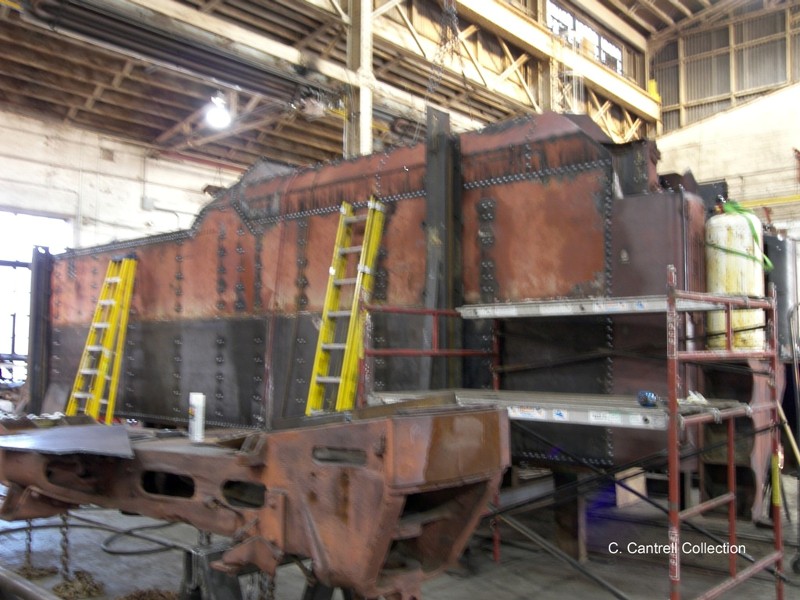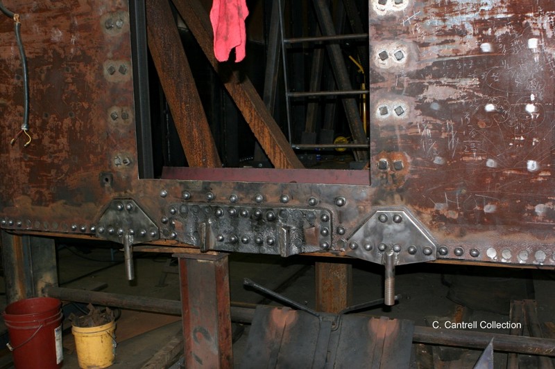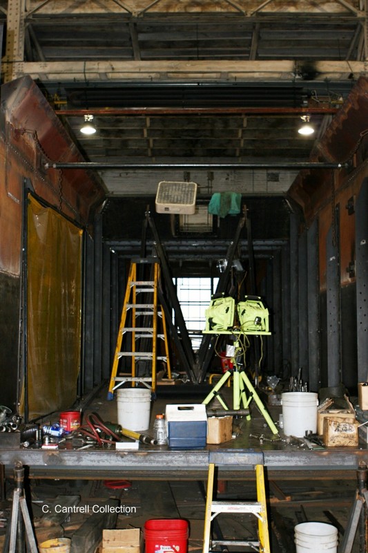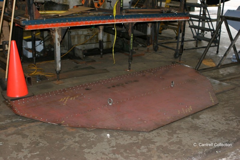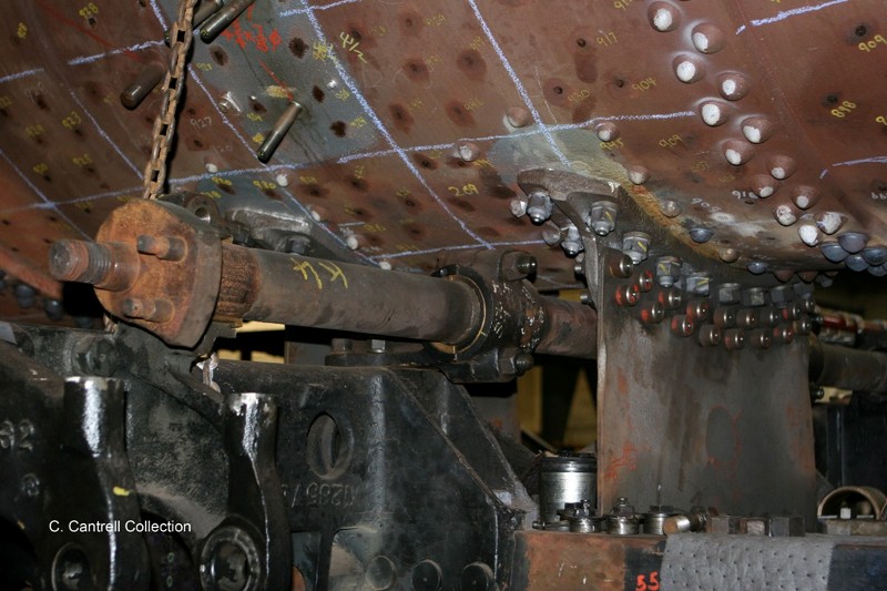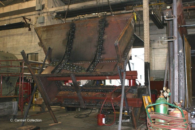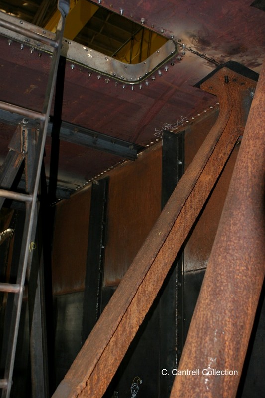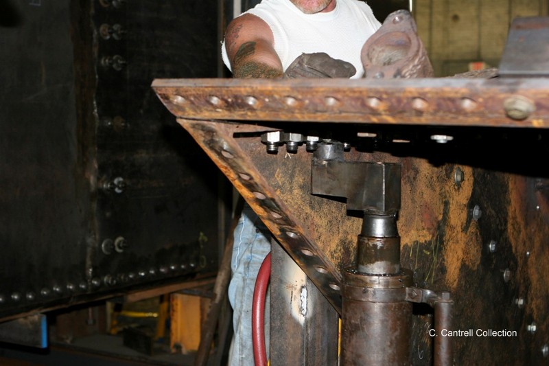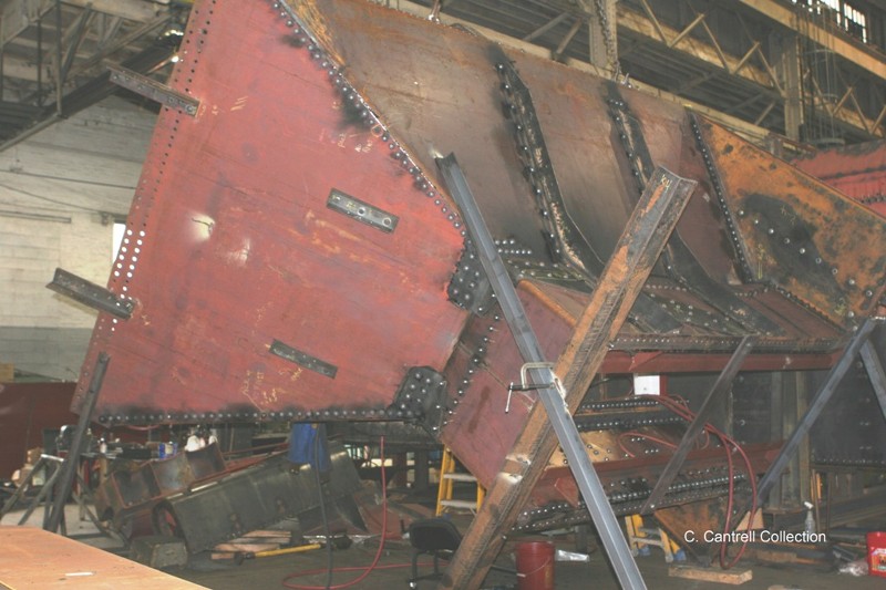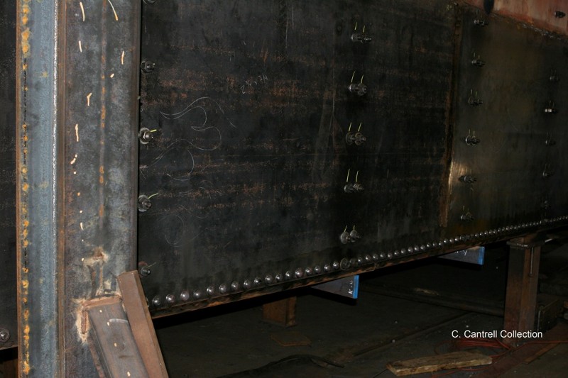 9. The tender upper deck support rail is removed to facilitate riveting inside the tender. |