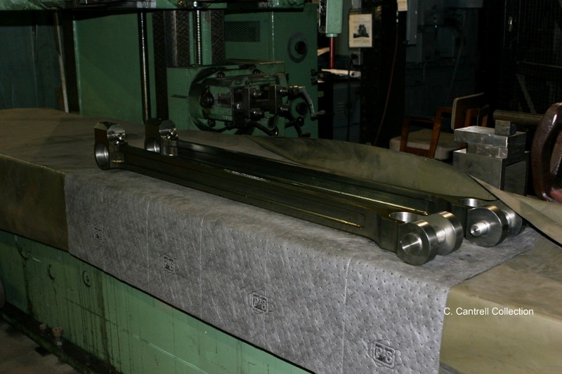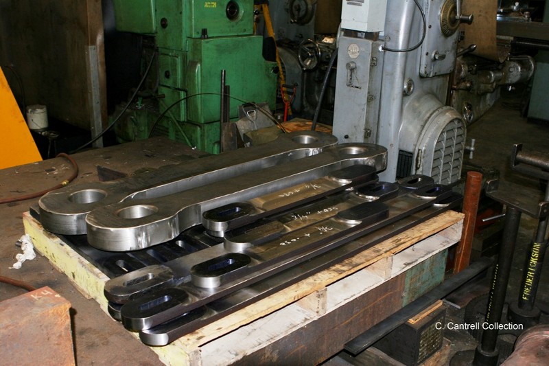 17. The completed pullin bars (railroad slang for pull bar) and spring hanger links. The links had to be manufactured to replace eight that were worn out. |