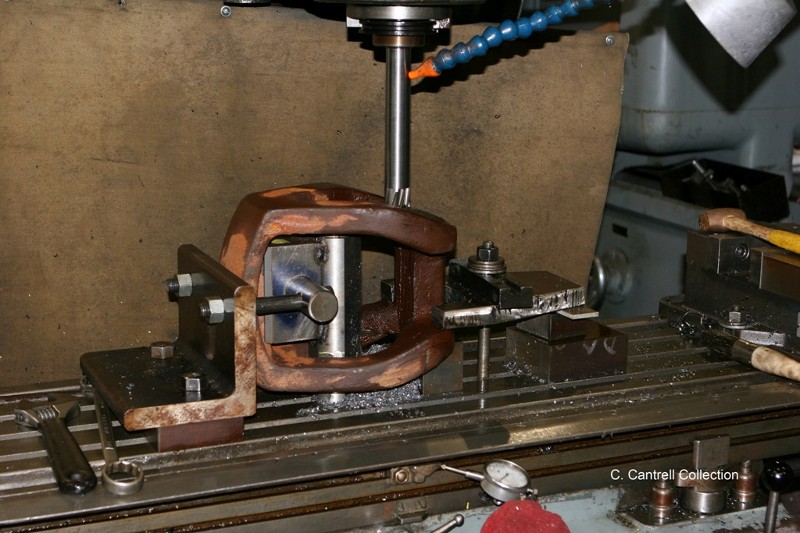18. Tender Spring hangers are in the process of being machined. Note the special fixtures fabricated to hold them in alignment while they are machined. |