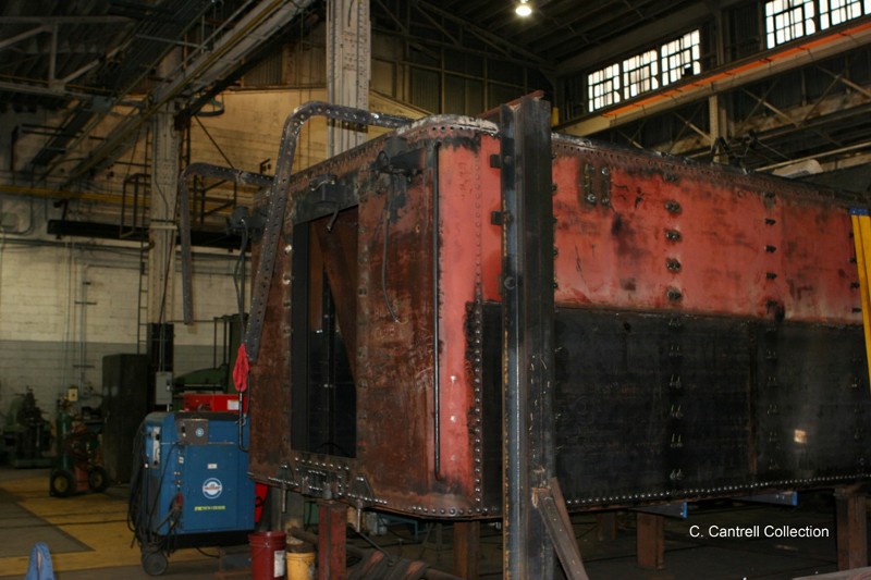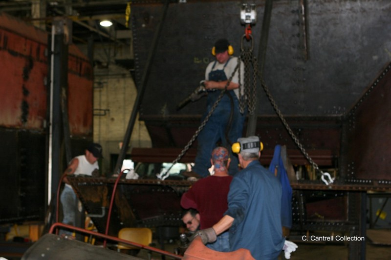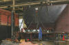 11. Fitting complete, the tenders upper slope sheet was removed to facilitate removal of the complete center section of the tender for riveting. |
