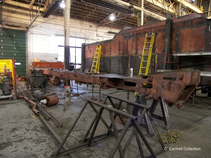 39. The tender frame backbone stripped of all parts prior to repairs. Among several other problems the frame has, during dismantling it was discovered that it had a downward bow which will have to be corrected. |