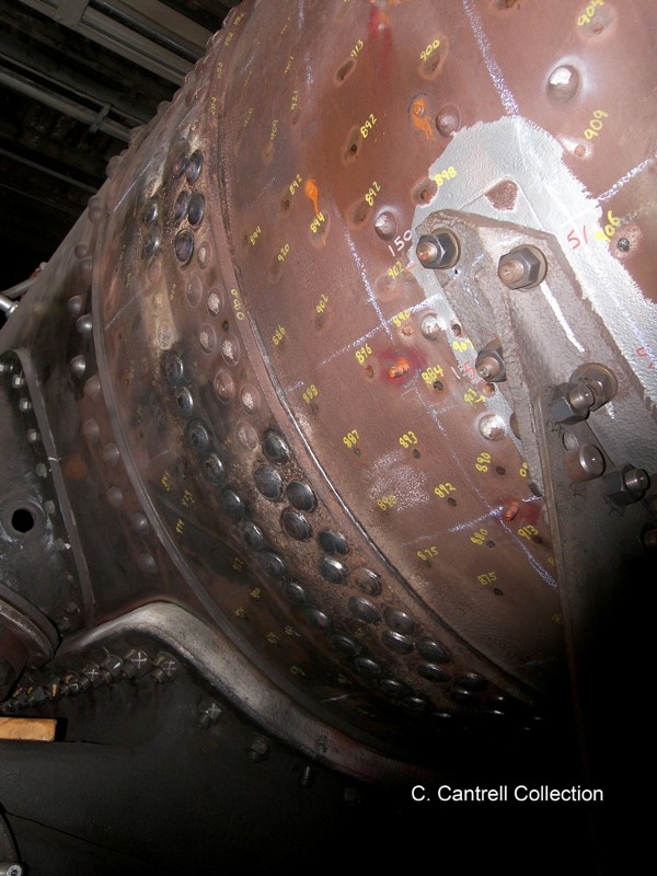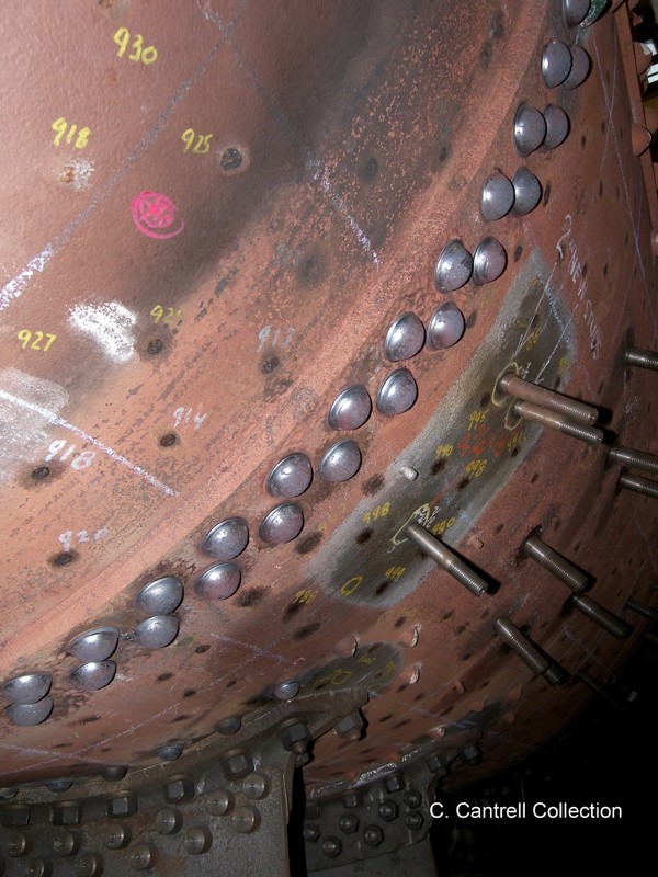 6. View of the new rivet work in the second boiler coarse near the flex plate. |