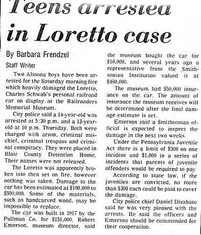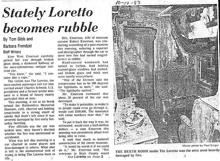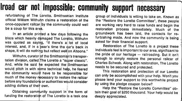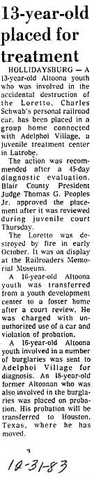 Altoona Mirror article on LORETTO, 12-15-83. David Seidel Collection |