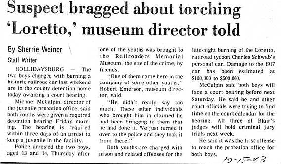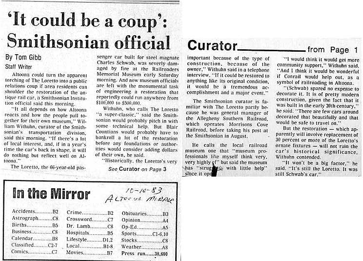 Altoona Mirror article on LORETTO, 10-13-83. David Seidel Collection |