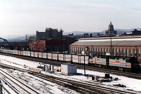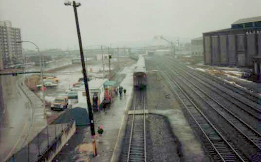 station_east.jpg (71549 bytes) Looking East from the 12th Street pedestrian bridge.  Date unknown. station_east-2.jpg (80875 bytes) Looking East from the 12th St Bridge.  A Westbound Freight approaches the Transportation Center. Note the Southern Pacific power.   6-26-98 FREIGHT TRAIN WRECK at 17th STREET BRIDGE ALTOONA, PA