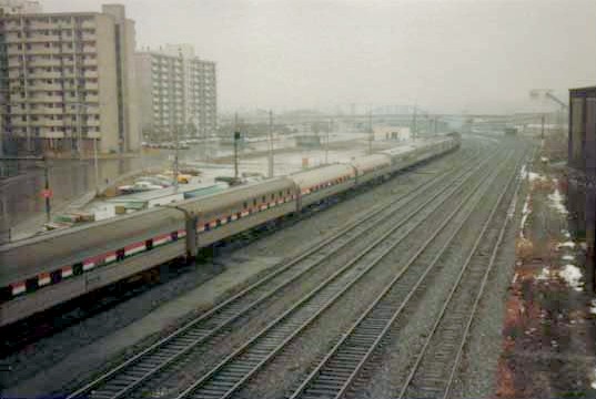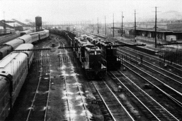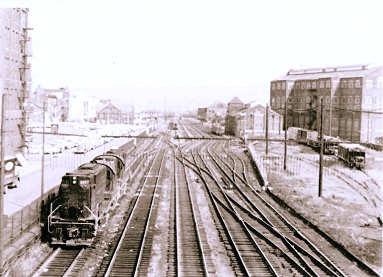 The view looks southeasterly, and the two tracks in the foreground were the passenger main tracks, which brings up a funny story.