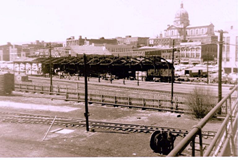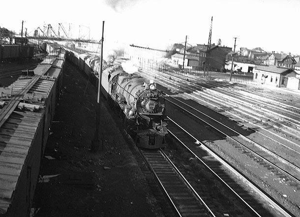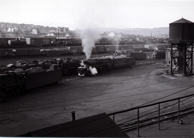 Steam locomotive  taken from 7th. Street looking east. (NOTE: Tom's pages have been taken off line but can still be found via the Internet Archive Wayback Machine.) Apr.17,1949...Steam locomotive filling with water, looking east from 7th Street. (NOTE: Tom's pages have been taken off line but can still be found via the Internet Archive Wayback Machine.)   Apr.17,1949...New diesel engine from 8th Street, looking east. (NOTE: Tom's pages have been taken off line but can still be found via the Internet Archive Wayback Machine.)