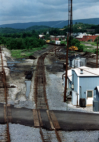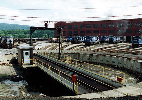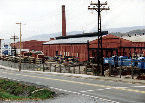 Juniata_Shop_Complex.jpg (64600 bytes) Juniata Shop Complex.  Looking SE from Chestnut Ave.  Fall 1995 scales_from_NW.jpg (101080 bytes) Juniata Scales.  Looking SE from Chestnut Ave.  5/22/00 E_and_M.jpg (71334 bytes) The Turntable at the E&M shop.  Date Unknown.