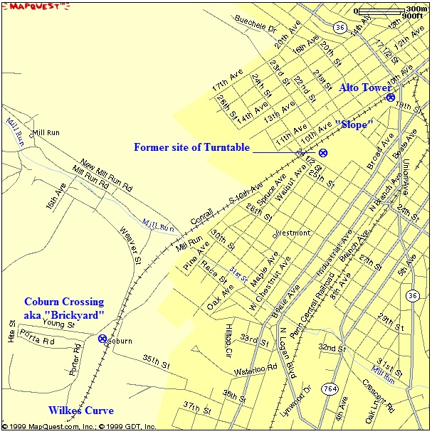 The next interlocking was FG (with a tower at 10th St, Altoona; MP 235.8), the Altoona Station, the 14th Street Tower {MP 236.10), Alto Tower (17th Street; MP 236.3) and Slope Tower (24th St, MP 236.10).