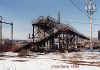 Just east of the roundhouse, was the mammoth East Altoona Coal dock which refueled steam locomotives for the Pittsburgh and Middle Divisions. This Coal Dock was constructed of concrete over a steel frame, was 135 ft high, and, when filled to capacity, held 1,250 tons of coal; at peak operation, 35 hopper car-loads of coal were required daily to replenish supplies. After removal of scrap steel, the base of the structure was dynamited and dropped into a huge pit prepared for that purpose, by Robert J. Kruise, demolition contractor. However, the structure was so huge, that the first attempt only resulted in dropping the structure in a tilted position (similar to the Leaning Tower of Pisa), but was subsequently dropped into the pit with a second blast some weeks later.