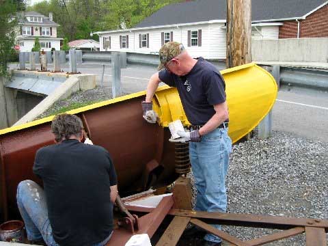 5-5-07 - Paint work on the NOSE PLOW following steel sheeting repairs over the winter months.