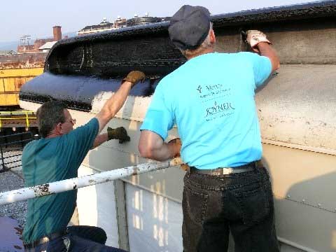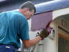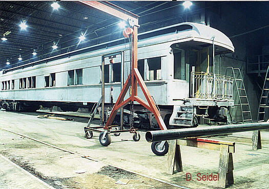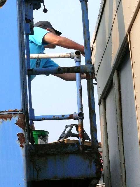 Harella work on the Chapter owned office car Duquesne at