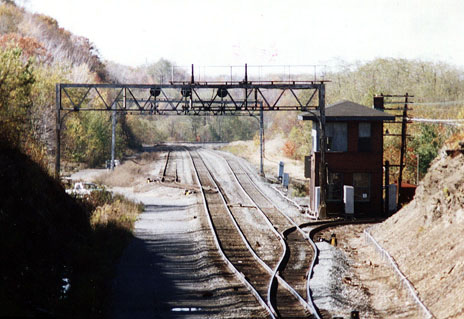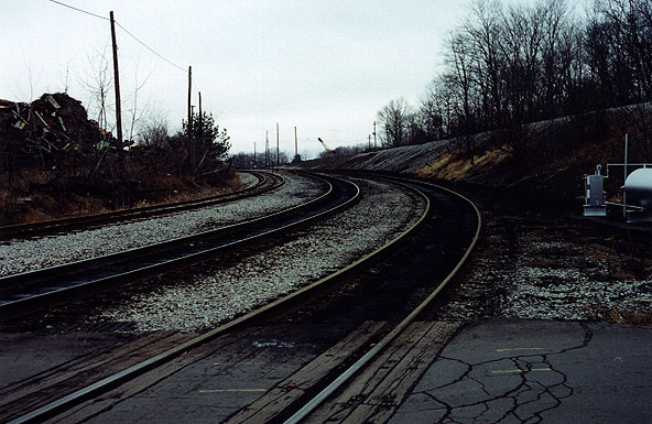 They have relocated track #0 which used to leave track #1 south of "MO" tower and circle behind "MO" tower and run to "AR" tower where it again was connected to track #1. Track #0 now runs parallel to track #1 right over the sight of "MO" tower. The track from the lower yard which received the "Black Lick" branch crossed the main on the "flyover" and turned north in the upper yard to join track #0 for access to the eastbound main at "AR" tower. There was also a passing siding off track #0 that ran from near the upper yard connection all the way to "AR" tower. That is as I recall why the signal bridge at "AR" spans four tracks. A lot of trains used to sit on track #0 and that siding waiting their turn to take the eastbound main through the Portage tunnel." Bill Nelson