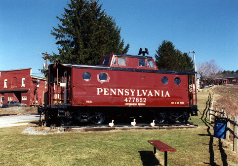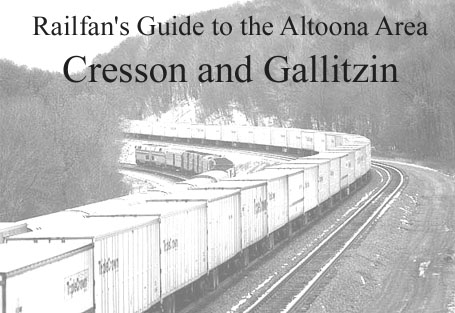 Along Front Street, a park with a PRR NC5 caboose and train watching platform has been built. From here, you can view operations at the Cresson Engine Terminal (milepost 251.0). Here, diesels (Helpers) are fueled, sanded, washed, etc as the Altoona/Juniata Shop complex has no servicing facilities.