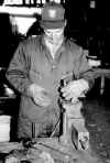 Photo of Jeff Pontius working at tool bench during 1986/87 restoration of K4 # 1361 at Altoona Car Shop (Conrail). Photo by David Seidel