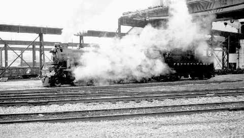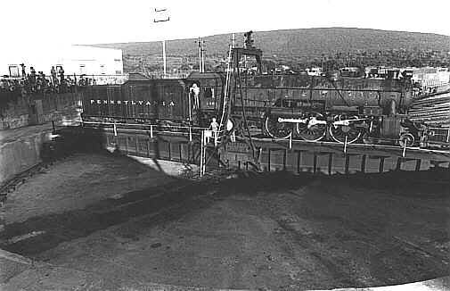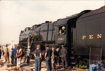 PRR K-4s #1361 on the turntable, Juniata Shops, Altoona, PA. Unknown photographer. 9/30/1985 |
