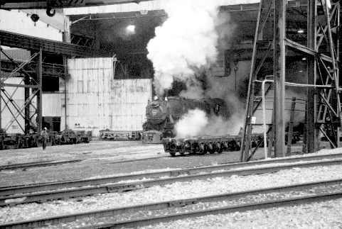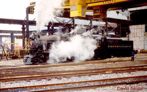 1987. John Turkeli of Farmingdale, NY, guides K4 pony truck to shop track at Conrail Altoona Car Shop. Photo by David Seidel |