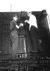 3-18-1987. Conrail Pettibone Crane lift crew. K4 was lifted on cribbing today for placement of main driving wheels underneath. Photo by David Seidel |