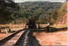 6-21-1987. K4 # 1361 has just left the Conrail Mainline at Tyrone, Pa and is heading north on the former PRR Bald Eagle Branch. Passengers will board at Vail approximately 2 miles north. This location is along the north side of the Tyrone passenger station site. Photographer David Seidel is standing on opposite span which formed a WYE at this location for trains entering or leaving the Bald Eagle Branch at the Main Line Junction. |