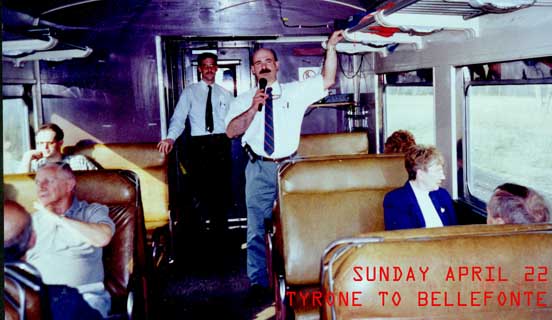 The three coaches owned by the Horseshoe Curve Chapter, former Lackawanna MU electric-motor commuter coaches, returned to Altoona in June after several years absence on lease to other short-line railroads. With the return of this equipment, Horseshoe Curve Chapter initiated a series of summer and autumn excursions on the Everett Railroad utilizing Roaring Spring as the base of operations. This joint venture with the Roaring Spring Historical Society, which has restored the former PRR passenger station at that location for their headquarters, proved to be a great success. Excursion activity began in July to Hollidaysburg and Martinsburg as well as September (Rare Mileage excursion of entire ex-PRR line for railfans), October, concluding with a Santa Claus special in late November.