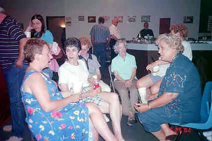 "The annual picnic of the Horseshoe Curve Chapter, National Railway Historical Society was hosted by Dave and Virginia Seidel at his cottage  in conjunction with members of the Altoona-Blair County Photo Society. Fifty + persons were in attendance on a hot Sunday August 4, 2002. Shaded by the Hemlock trees, good conversation abounded while Hamburgers and hot dogs and sausage smoked on the charcoal grilles and the aroma wafted through the trees. Everyone brought good appetites and a covered dish to share. Food and fellowship were in abundance and a good time seemed to be had by all. Dave delegated the grille-work (as usual) while he parked cars between all those trees. Late afternoon brought refreshment with Virginia Seidel's annual water balloon tossing contest. Since everyone was attired in drip-dry permanent press fabrics, a good time was had by all (we formerly used EGGS!). This year was one of the largest crowds yet and we were maxed out on parking. Can't park in the farmers corn field now, can we? This year's picnic was an AUSPICIOUS OCCASION with the presentation to Director Dick Charlesworth of his silver 25 year NRHS membership pin. The picnic also coincided with President Frank Givler's birthday. MUCH TO CELEBRATE. Congratulations to all. Joan Stern reminded "camera-club" people (some dual memberships there} about the forthcoming August 20th meeting/gathering at the Stern residence in Roaring Spring as well as the preparations for the club's 50th anniversary exhibit at the Southern Alleghenies Museum of Art/Altoona. Dick Charlesworth announced the September 15 NRHS dinner train to be operated by the Horseshoe Curve Chapter: Depart Hollidaysburg Canal Basin Park at 1:30 PM. Travel to Roaring Spring, PA. Shuttle to RS Fire Hall for one of their renowned turkey dinners. Return, of course, to Hollidaysburg in the same manner.  Reservations via Dick Charlesworth at 695-2201 or Bill Mangiacarne at 943-6784. The evening ended with reflection and more conversation as the locusts and crickets serenaded the assembly. Not sure how all the "guys" ended up in a cluster and the "girls" ended in another. I guess it was "JUST BECAUSE" (you had to be there to understand that one). Thanks to ALL for visiting Camp David. "  David Seidel