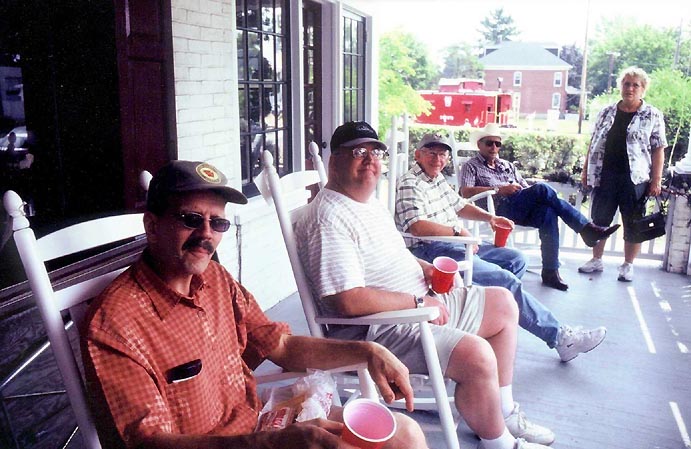 BLUE_MOUNTAIN_EXPRESS.jpg (88773 bytes) 8-24-2002 - New Oxford, PA. Frank and Ron Givler, David Seidel, Les and Pat Shaffer, relax on the porch of an antique shop adjacent to the station. BLUE_MOUNTAIN_EXPRESS-1.jpg (29847 bytes)
