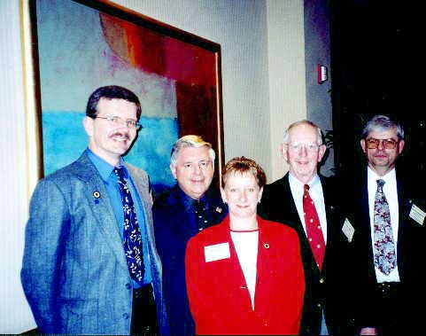 HCC_members_Harrisburg_4-13-02.jpg (34533 bytes) The semi-annual meeting of the National Railway Historical Society convened Sunday morning at 8:30 a.m. in the Harrisburg Hilton. Horseshoe Curve Chapter was represented by Director M. Richard Charlesworth, President Francis X. Givler and Secretary Karin Givler, Chapter Historian David Seidel, and Larry G. McKee.   Submitted by David Seidel.