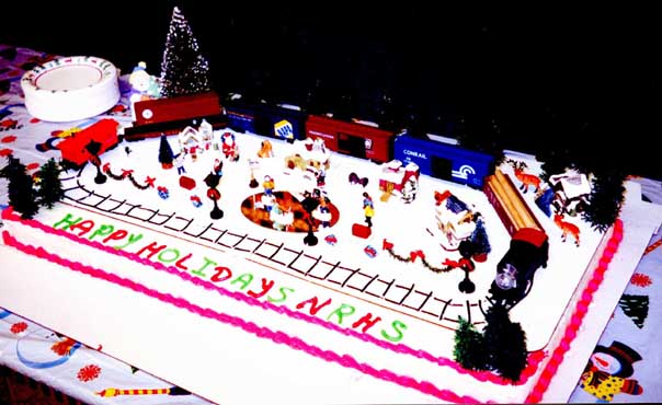 The Horseshoe Curve Chapter, NRHS Christmas Party was held on 12/7/2002 at 6 pm at the Geeseytown Fire Station Social Hall. It was attended by about 30 people. Scott Cessna and his wife and daugther were the guests. Scott spoke about the present and future of the ARMM. He took questions of which there were several. There were some tables set up for show and tell and several folks brought out their items. After the meal and Scott spoke, Dave Seidel, Chapter Historian, presented a slide show of some of the events and people that have been part of our organization from the very early days. My how some have changed and how many we have lost over the years! The meal was prepared by the fire company and consisted of ham, turkey, potatoes, corn, gravy, filling, cranberry, and a homemade cake decorated for the occasion along with Ritchey's decorated ice cream. Denny Walls.