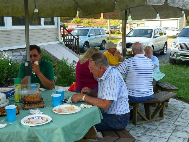 Our thanks, once again, to Diane and Will Teeter for hosting our annual picnic at their lodge near Hollidaysburg, PA. Its always a pleasure to visit this rustic location and share food and conversation. We were honored this year by a visit by our Regional Vice-President, John D. (and Mrs.) Sweigart. A great time was had by all and we thank the Teeter’s for the gracious hospitality. Mrs. Sweigart displayed the NRHS “Tile” which is available from Society sales, which makes a nice addition to NRHS memorabilia.