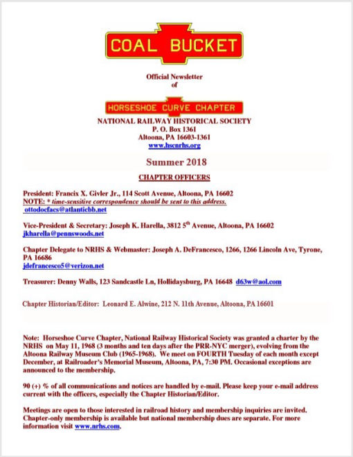 -- This website contains articles from "The Coal Bucket" as well as additional items. Note: The content of this site was previously found on the Horseshoe Curve Chapter, NRHS website, which was disestablished August 2013. --