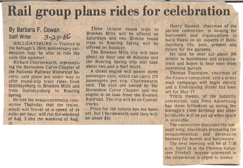 "Horseshoe Curve Society Presents Video"; 12-18-90, Altoona Mirror
