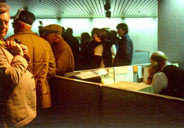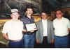 This photo was taken 12-18-1990 when the video tape, The Altoona Trolley story was issued by the Horseshoe Curve Chapter, NRHS. In this photograph, a copy of the tape was presented to Phil Fry, General Manager, Altoona Metropolitan Transit Authority (AMTRAN). Left to right: Dick Heiler, producer of the Master tape for Horseshoe Curve Chapter, David Seidel, Horseshoe Curve Chapter Historian and project committee person; Phil Fry, General Manager, AMTRAN, and Leonard Alwine, Horseshoe Curve Chapter specialist on the history of the predecessor Altoona and Logan Valley Electric Railway.