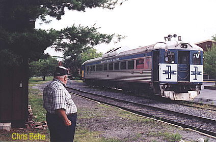 Bellefonte Historical RR's RDC car leaving Bellefonte with Chapter members on board. 6-20-99
