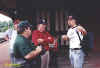 Here, David Seidel (in red) speaks with railfan Mark Wurst (R). 6-20-99 Bellefonte Historical RR's RDC car. 6-20-99