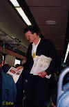Horseshoe Curve Chapter, NRHS, President Frank Givler distributes visitors guides on the Sunday, 10/3/99, 3pm excursion train.   He also acted as conductor. Passengers disembarking the Sunday, 10/3/99, 1pm excursion train at the Altoona Station.  Officers from the Altoona Police Department assisted in crossing them across (10th Avenue aka the PRR Expressway).