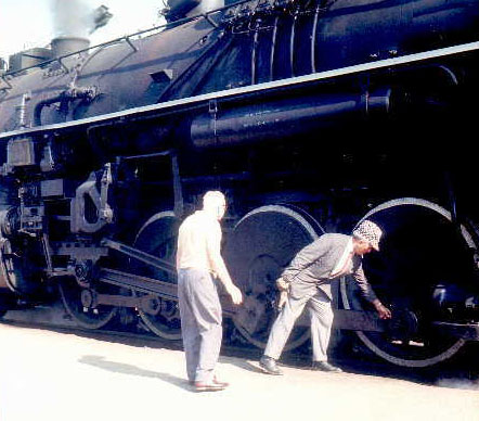 This photo shows Frank Givler, Chapter President, checking installation or rebuilt air brakes on the Chapter coaches on 7-9-00 at the Everett Railroad headquarters, Wye Switches, Duncansville, PA. Photo by David Seidel (posted 8/24/00)