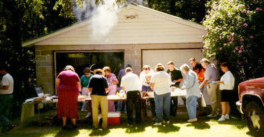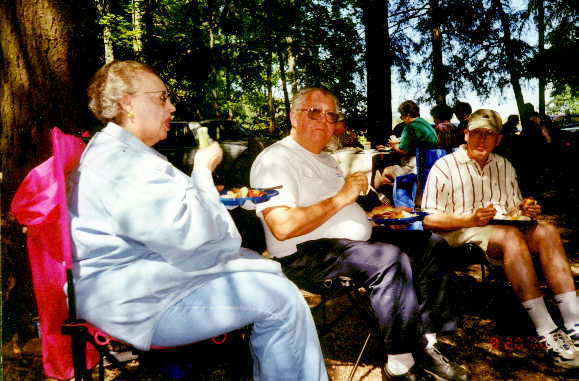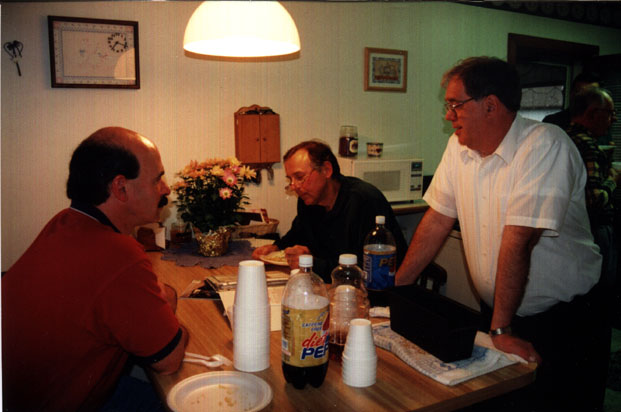 August 2000 Chapter Picnic About 40 attended the August 19, 2000 event. Dave Seidel said that they "Couldn't have parked one more car in. Weather was great...sunny, low humidity, just enough coolness to make it superb. Food was plentiful. The host seemed to park cars while the webmasters parents flipped burgers. We had a few special guests...Charlie Horan from PRR T&HS "down east" and Don Cassler and his grandson from Pittsburgh, special guests of the Seidel's. Don, like H. Wayne Burket and others, has a sophisticated model train layout in his basement, a testament to his engineering background. Don Cassler's layout make the cover of Railroad Model Craftsman about 10 years ago.