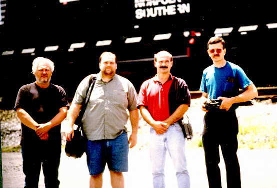 6-10-00 Following arrival of the Horseshoe Curve Chapter coaches in Altoona from Pittsburgh and West Virginia & Northern RR. Left to right: Jody Kinsel, Andy Mulhollen, Bill Mangiacarne and Frank Givler, who monitored movements from Cresson to Altoona. Photo by David Seidel |