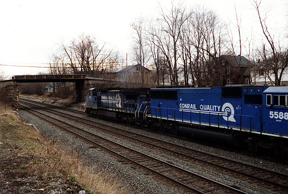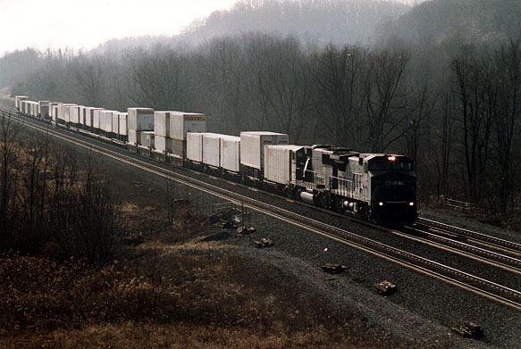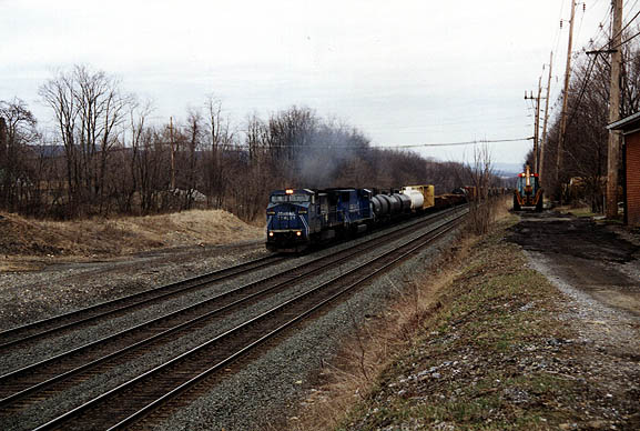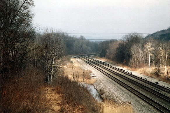 "ANTIS" was located at MP 232.1. This tower segregated the Passenger Mains (Tracks #3 and #4) to the (rr) north and the freights operating on tracks #1 and #2. Tracks #1 and #2 left the Eastbound Departure Yard at "ANTIS". "The east gateway into Altoona." One place to go in this area is actually on the bridge along Rt 4018 near Riggles Gap Run. (Referred to here as the Bridge at Pinecroft).