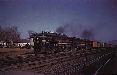 Alco FA-2 9631 leads A-B-A set of merchandise freight through Tipton 1961.jpg (36483 bytes)   PRR Alco FA-2 #9631 leads an A-B-A set of merchandise freight through Tipton in 1961. (a postcard) The Altoona Speedway. (Photo by Tom Lynam and Altoona Archives) (NOTE: Tom's pages have been taken off line but can still be found via the Internet Archive Wayback Machine.)