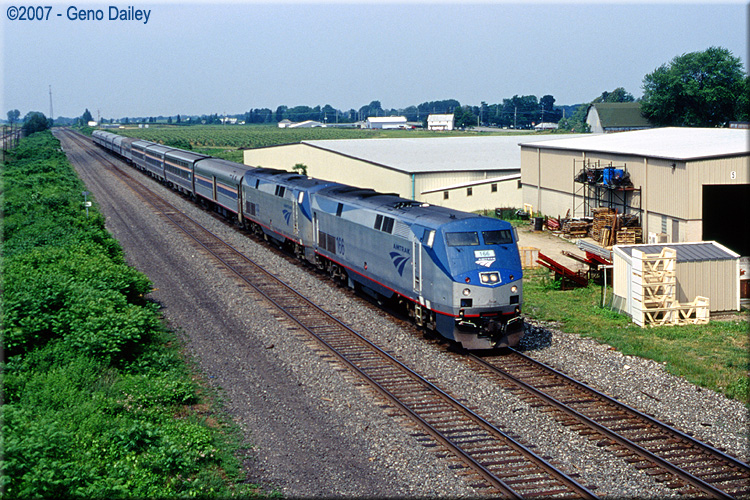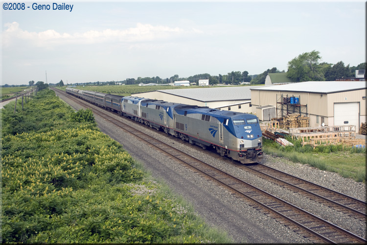 | Train #48 passing through North East, PA on June 20th, 2008 at 9:35am with P42DC #9 leading. |
