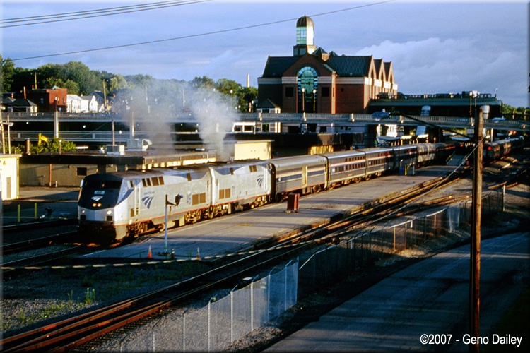 | Train #49 departing Albany-Rensselaer Station with P42DC #46 on the lead on August 10th, 2007. |