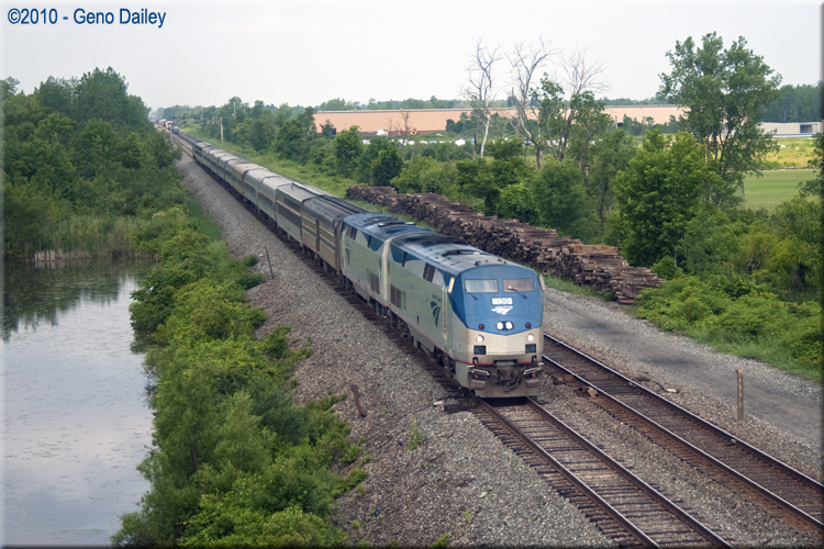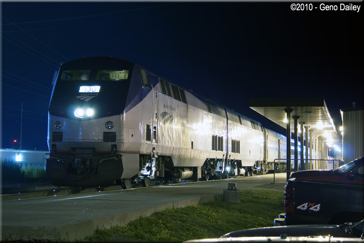 | Passing through Lancaster, NY is Train #48 with P42DC #130 on the lead on June 25th, 2010. |