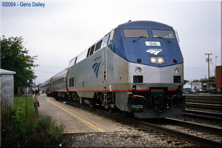 Train #50 taking a break at Charleston, WV on September 29th, 2004 with P42DC #94 on the lead.