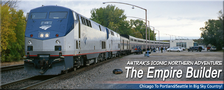 | Train #7/27 during it's station and service stop in Minot, ND with P42DC #19 on the lead on September 26th, 2006. |