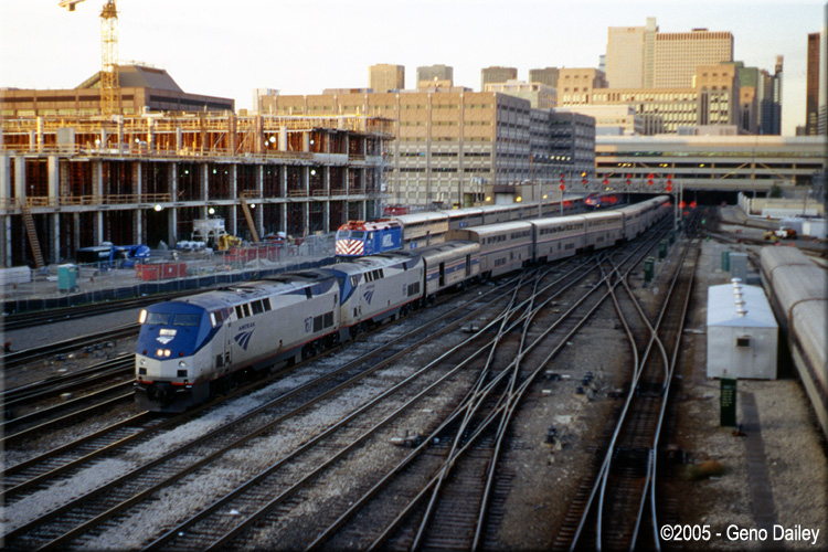 Train #8/28 after arriving at Chicago Union Station now heading into the coach yard for servicing on November 2nd, 2005.