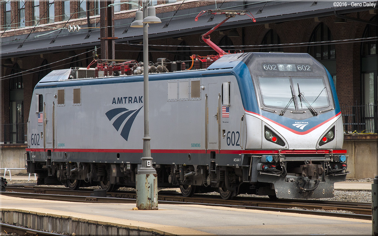 Built by Siemens Mobility in Sacramento, CA in June 2013 and numbered 602, these locomotives are the replacement for Amtrak's AEM-7 electric locomotives for use on the Northeast Corridor. The name "ACS-64" means "Amtrak Cities Sprinter" and the 64 represents 6.4 megawatts of electric power which is equivalent to 8600 horsepower. Historical information about this locomotive provided by www.amtrakbythenumbers.com. |