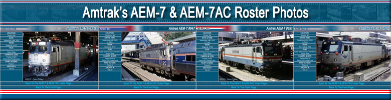 Hebner's Amtrak Photo Archive for more info on the AEM-7's. 2018 Update: All AEM-7's have since been retired by Amtrak and also a separate page for the ACS-64's is now online and can be seen by clicking HERE. |