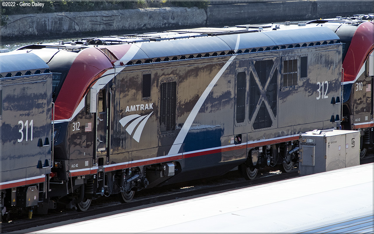 Built by Siemens Mobility in July 2022 and numbered 312. This series of locomotives is a long-distance variant of the Siemens SC-44 Charger used on state-sponsored corridor trains. Historical information about this locomotive provided by www.amtrakbythenumbers.com. |